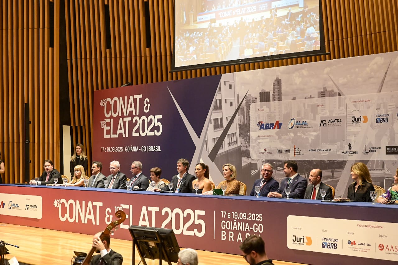 Foi realizada hoje, em Goiânia, a solenidade de abertura do 46º Congresso Nacional da Advocacia Trabalhista (CONAT) e do 19º Encontro Latino-Americano de Advogados e Advogadas Trabalhistas (ELAT). O evento é promovido pela Associação Brasileira da Advocacia Trabalhista (ABRAT) e pela Asociación Latinoamericana de Abogados y Abogadas Laboralistas (ALAL), em parceria com a Associação Goiana da Advocacia Trabalhista (AGATRA).